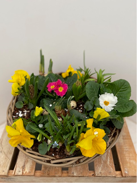 Geniet van bloeiende plantenpracht, ook op je terras zal deze mand vol kleur mooi staan.